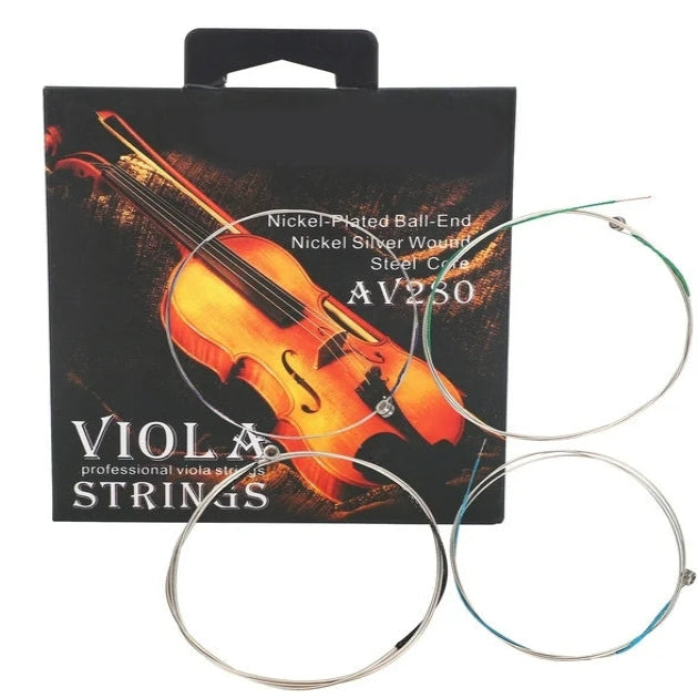 Features1.The four viola strings one set are suitable for 14 "‑16" violas, a good replacement for viola lover. 2.This product is made of high quality steel core, which provides it excellent toughness and even uniform tension. 3.The strings is nickel‑silver alloy wound with nickel on the ball‑end which makes it durable and easy to use. 4.The tie is made of strong and good quality, the tones are rich and warm, with lots of harmonics. 5.The sensitive sound is natural and comfortable, the voice is soft, transparent and rich in chorus.SpecificationCondition: 100% Brand NewItem Type: Viola StringsMaterial: MetalColor